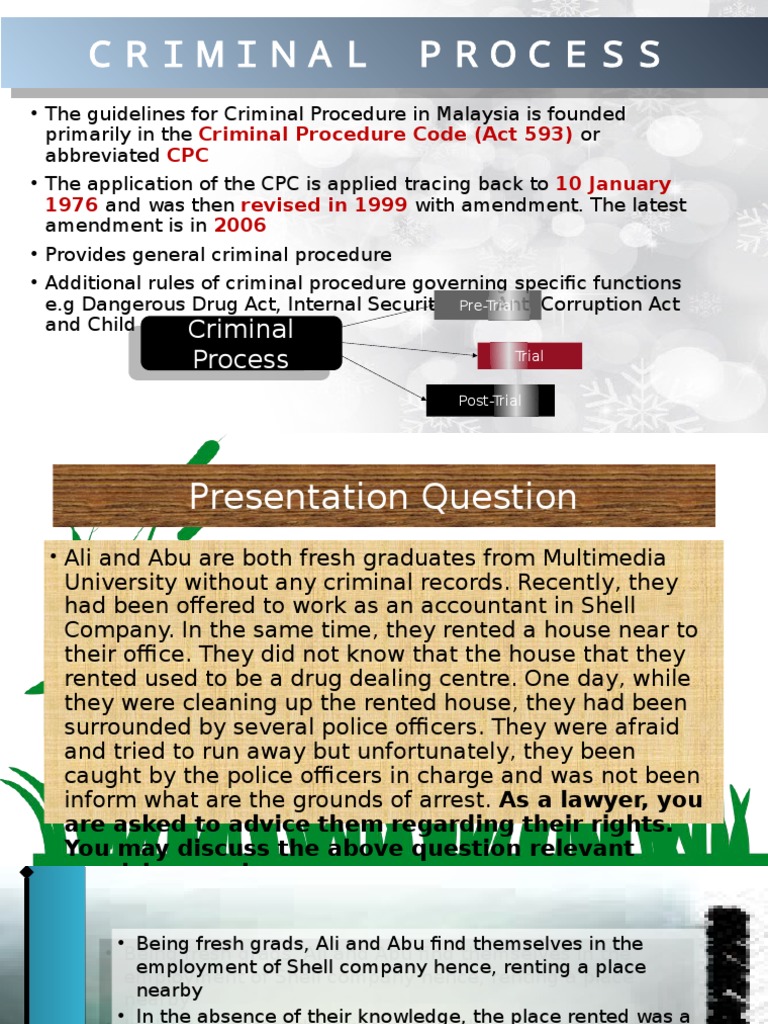 Extension of code to extraterritorial offences. Malaysia is a country that is rapidly developing and achieving success after success, but so it is not immune from facing various criminal acts, committed by individuals who are not responsible. Malaysia (200) > criminal and penal law (17). Supercedes the criminal procedure code of 1935. Criminal procedure code act 593. There are many laws governing the administration of criminal justice in malaysia but the foremost statute is the criminal. 0 reviews | write a review. Learn vocabulary, terms and more with flashcards, games and other study tools. Each objective question from crpc has 4 options as possible answers. Murder and provocation under section 300 penal code. This webpage provides access to criminal codes of osce participating states. Therefore, it appears necessary, according to the ministry of justice, to create a suitable. With criminal procedure for the criminal justice professional, tenth edition, you'll have everything you need to develop.