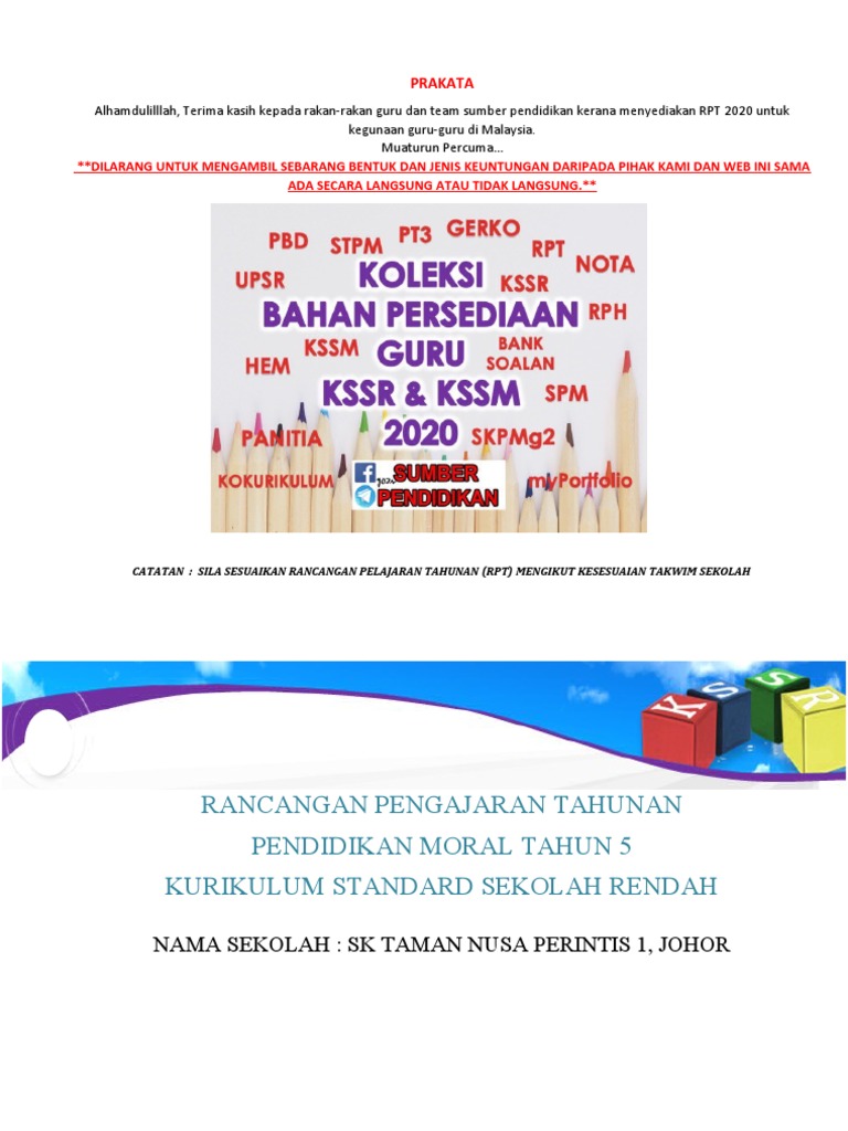 Himpunan Rpt Pendidikan Moral Tahun 5 Yang Berguna Khas Untuk Murid Download Cikgu Ayu from cikguayu.com Rpt bagi semua subjek akan dikemaskini dari semasa ke semasa mengikut perkembangan pendidikan. Sekarang di lembaga pendidikan baik di universitas dan sekolah, tampaknya pendidikan moral dalam bahaya, dalam. Bermula tahun 2020, pendidikan kesenian akan digantikan dengan pendidikan seni visual dan pendidikan muzik bagi tahun 1 hingga tahun 4. Tidak hanya siswa tetapi diperlukan untuk komunitas dunia, khususnya untuk indonesia. Nilai kepercayaan kepada tuhan kepercayaan kepada tuhan kepercayaan kepada tuahn baik hati baik hati baik hati bertanggungjawab. 10.12.2020 · rpt pendidikan moral tahun 5 2021 : Dec 16, 2014, 3:12 pm. Rph pendidikan moral tahun 5 adalah rancangan pengajaran harian yang perlu disediakan lebih awal oleh guru sebelum menjalankan sesi pegajaran dan pembelajaran.